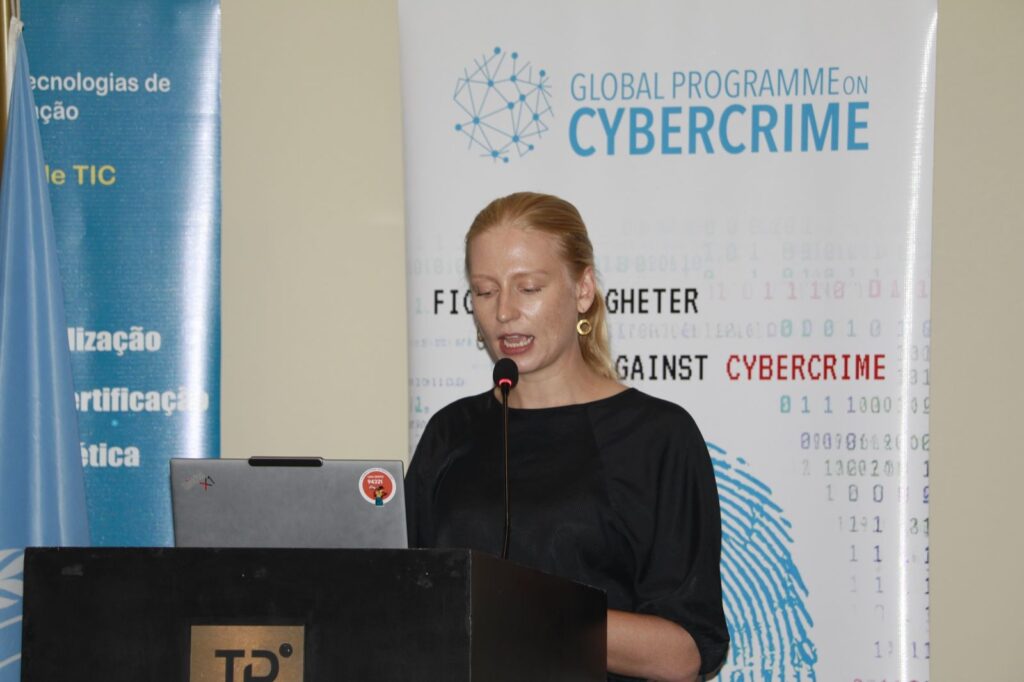 Mari Lakeus, Especialista em Prevenção do Crime da UNODC, alertou para os riscos associados ao uso inadequado da Internet e das redes sociais, enfatizando que a prevenção começa com atitudes individuais responsáveis. Referiu que foram registados diversos casos de phishing, roubo de identidade e outras formas de burla online, sendo fundamental que os cidadãos não partilhem informações sensíveis e verifiquem sempre a autenticidade das fontes antes de interagir com qualquer conteúdo digital. Reforçou igualmente a necessidade de denúncia de incidentes às autoridades competentes.